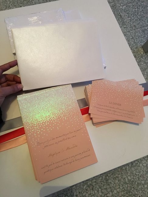 J ai reçu mes FP dans la semaine .. Un peu déçu de planet cards car ils n ont jamais réussi à m envoyer la couleur demandée .. Bref ça ira quand même avec les couleurs du mariage.. J ai investi dans un kit de calligraphie ( il m aurait fallu des...