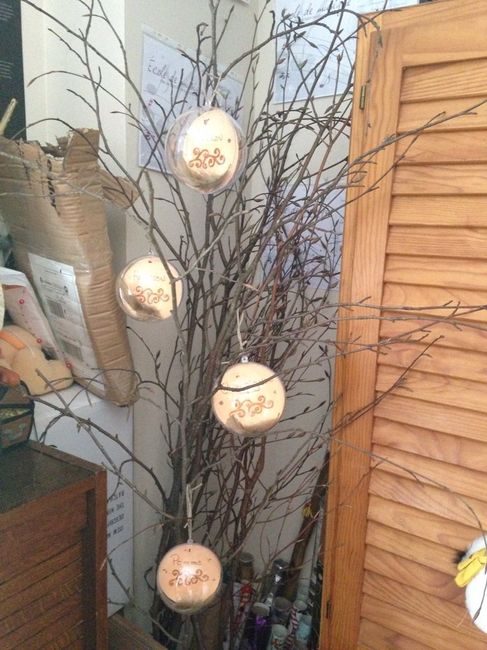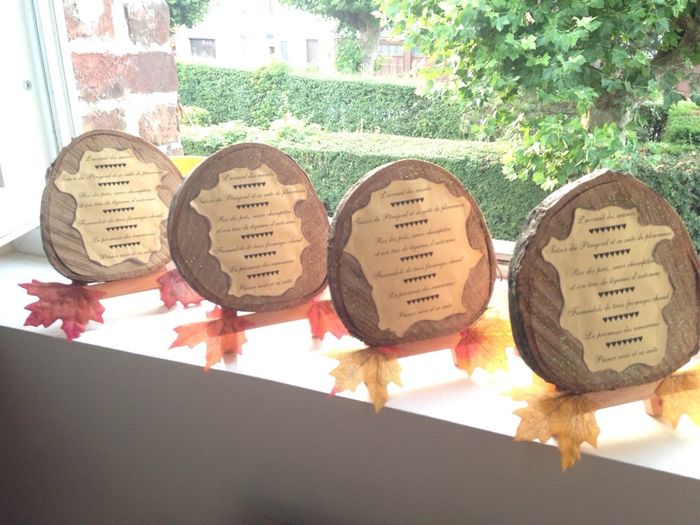 Bonjour à toutes et a tous . A J-79 j'ai commencer notre plan de table. Il s'agit d'une première approche il manque plein de choses. Les branches seront mise dans un pot pour reconstituer un arbre avec de petites feuilles mortes collées par ci par là...