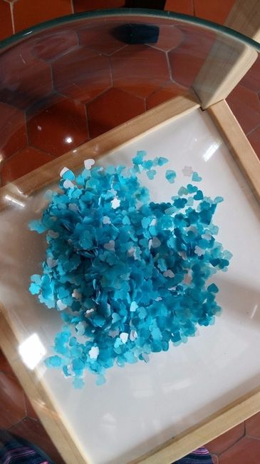 Le jour où j'ai décidé de fabriquer mes propres confettis.... Je les voulais biodégradables car écolo dans l'âme.... J'ai lu que le papier de soie était biodégradable donc ni une ni deux je commande deux mini perforatrices (fleur et coeur) et du...