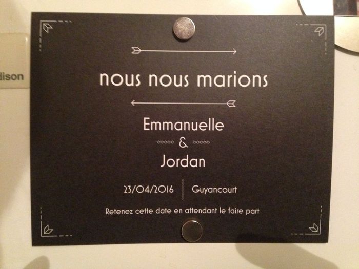 Voici une petite photo de notre save the date (que nous avons accroché sur notre frigo) tout le monde est au courant enfin et nous avons eu des retours tellement adorables.