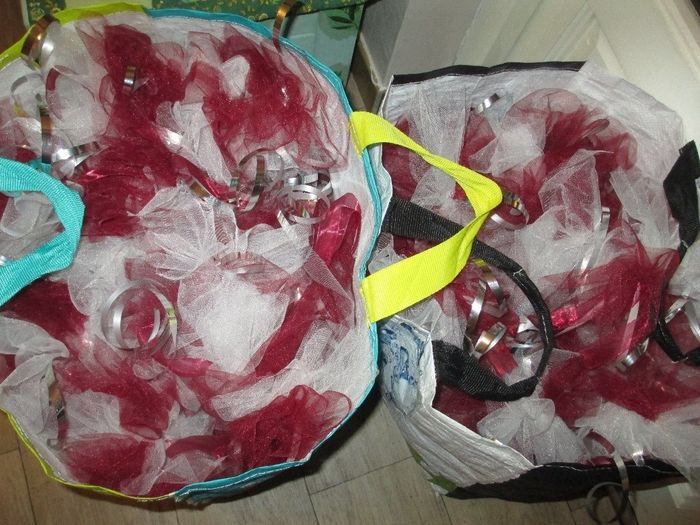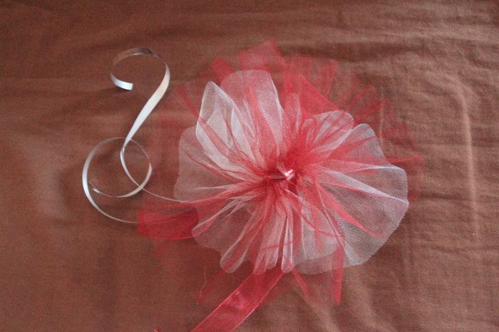 Ca y est, je me suis lancée dans le DYI pour faire la décoration des voitures. Plutôt que de faire de simples noeuds, j'ai fait des pompons avec du tulle blanc et du tulle bordeaux, un ruban bordeaux et du bolduc pour tenir le tout. Je suis plutôt...