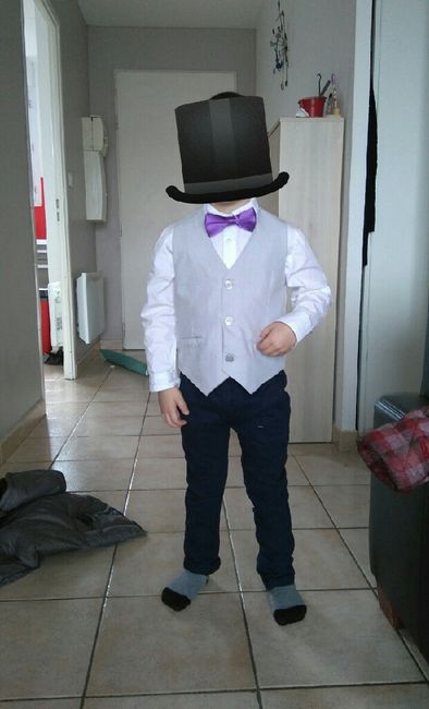 Voilà on a enfin trouvé sa tenue pas de costume finalement je ne trouvais pas ça jolie sur lui ça le grossissait et ne lui correspondait pas la c est plus lui si on trouve à blazer on lui prendra nous on le trouve trop chou et coquin Et vous ??