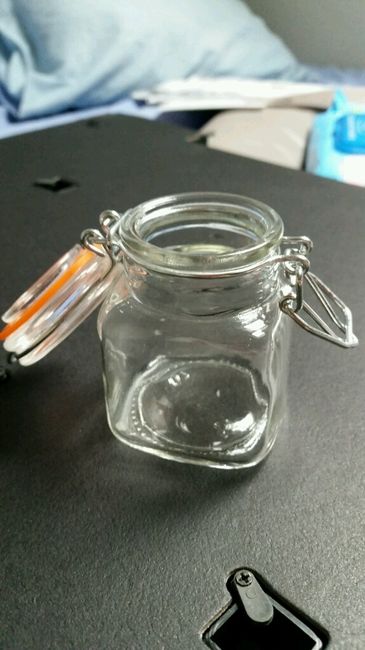 voila ce que j ai trouvé hier à ACTION donc je vais me servire des petits pot a epices ( 1EUR95 les 4)pour faire mes bougies en cadeau d invité et les straces (0,65cts le sachet )pour mettre sur notre livret de messe .je suis contente de mes...