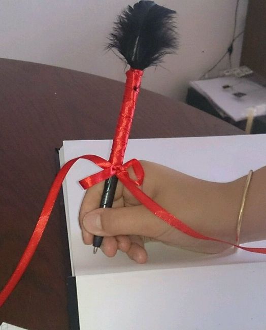 Voilà mon stylo tout simple pour laisser de doux messages. Je m'attaque au livre d'honneur et la c'est un gros morceau il sera pas fini aujourd'hui
