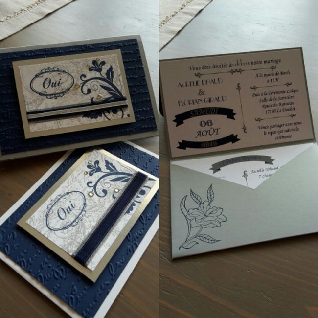 J avoue que je suis curieuse de voir vos faire parts de mariage. Le mien sauf qu a la place du ruban sur la photo je mettrais un ruban en dentelle. Il est simple mais je n ai pas de code couleur pour mon mariage alors je voulais rester dans la...