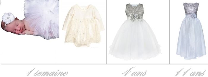 Voilà j'ai choisi trois modèles un peu différent pour mes trois demoiselles d'honneur vu qu'elles n'auront pas le même âge à mon mariage: pour la plus petite: un body pailleté avec un tutu qu'on ne lui mettra que pour les photos. Pour les deux...
