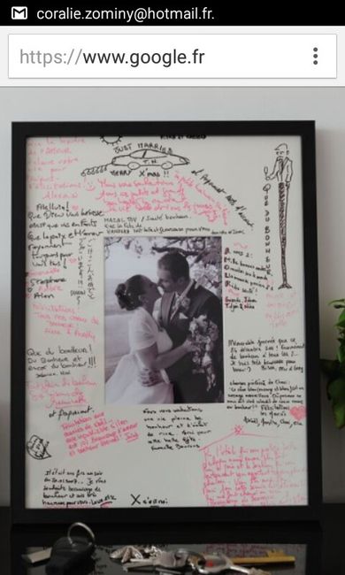 Bonjour les filles, Je viens d'avoir une idee à j-25, ne pas mettre de livre d'or mais un polaroid ou chaque invité ou famille se prend avec un petit tableau ardoise (comme ceux des écoliers pour le format) ou ils écriraient un mot dessus. Et je...