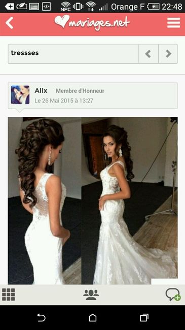 Hello à toutes.. Je n'ai aucune idée de la coiffure que j'aimerais porter le jour J Je trouve celle çi très jolie mais j'ai peur qu'elle paraisse un peu trop simple.. Vos avis? Et vous quelle seras votre coiffure pour le grand jour?