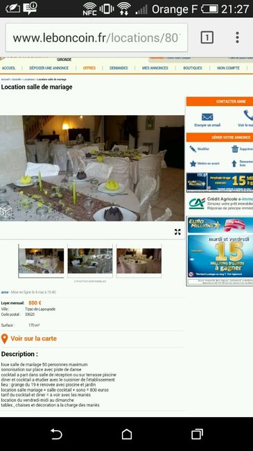 Bonjour les filles, Je vous écrit pour partager mes sentiments de ces derniers jours parce que c'est pas trop ça. La salle que nous avons réservé nous a envoyé un mail ce week-end contenant une bonne et une mauvaise nouvelle. La bonne: c'est que nous...