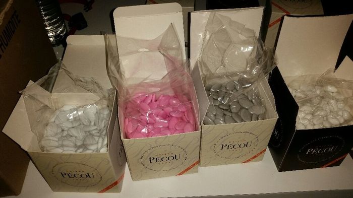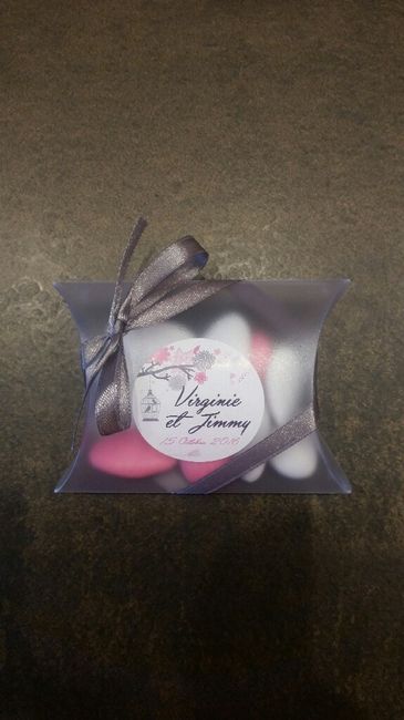 Essai du jour je voulais quelque chose de simple,j'ai pris des dragées que j'avais les nôtres seront blanc rose et gris je pensais faire un sur 2 avec du ruban rose vous en pensez quoi ?