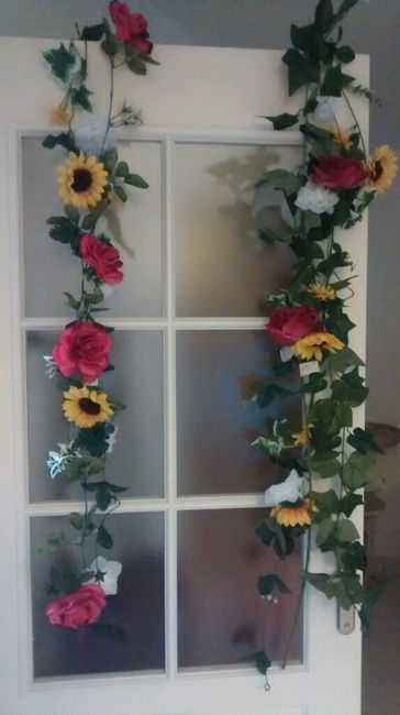 Tout est dans le titre les fleurs pour la balançoire en bois accrocher dans un arbre qui servira au photo du save thé date et en déco le jour du mariage. Les photophores verres brisé trouvé chez lafoirefouille 2€ et les nœuds que je confectionne...
