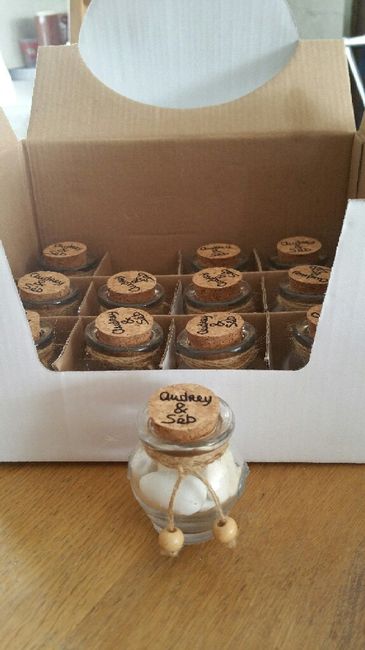 Coucou,Trop contente j'ai terminé mes contenants à dragées!!!! Restera plus qu'à mettre les dragées quelques jours avant le mariage