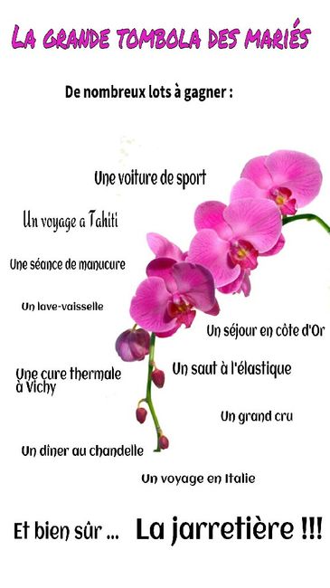 Pour le jeu de la jarretière nous avons décider de faire une tombola avec ticket en vente et lots a gagner 😉 vous en pensez quoi de la présentation ? Il sera imprimer sur feuille A4 et plastifier