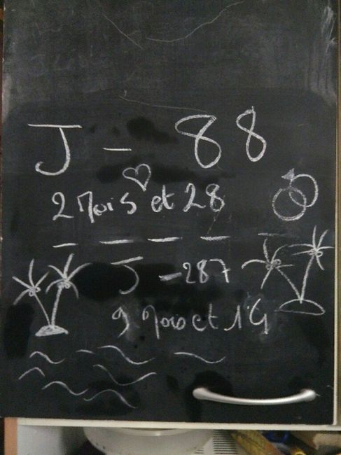 M-3 aujourd'hui et pour fêter ça, on va réserver notre voyage de noces à l'île Maurice ! Sur notre armoire, nous avons installé un sticker autocollants ardoise qui nous permet d'écrire la liste de courses facile et réutilisable presque à l'infini...