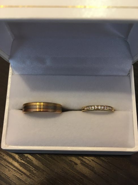A J-316 essayage des alliances commandées . Celle de chéri nécessitait une finition brossée faite en bijouterie , vraiment pas déçus . Mais on les a laissé pour la gravure ! Donc pas encore récupérées définitivement je vous mets une petite photo