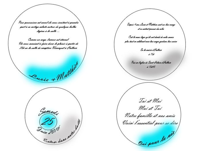 Bonjour, Je compte faire les faires parts de notre mariage moi même, et je les voudrais rond, pour ce qui est de la découpe je compte m'acheter un cutter circulaire ... En faite mon soucis est au niveau des textes, et de la dimension et j'aimerais...