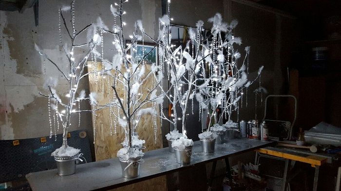 Et voilà avec ce beau soleil aujourd'hui nous avons fini nos centres de tables toujours sur le thème " aux portes du paradis " nous sommes parti de branches mortes nous les avons placer dans des pots en plastique avec du plâtre et bomber le tout à la...