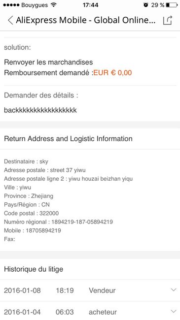 Bonjour et bon week-end à tous. Je suis en train de régler un litige avec un vendeur Aliexpress. Il accepte de me rembourser partiellement mais j'ai du mal à comprendre le fonctionnement de ce dit remboursement. J'ai l'impression qu'il veut que je...