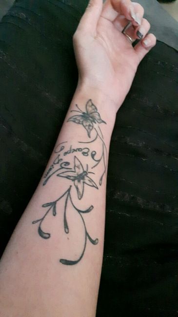 Trop contente je me suis fais un nouveau tatoo en rapport à mes enfants j'y tenais beaucoup et ça y est je l'ai fait !!! Je sais que certaine ne trouve pas ça jolie avec une robe de mariée ça enlève le côté "classe" du mariage mais c'est mes enfants...
