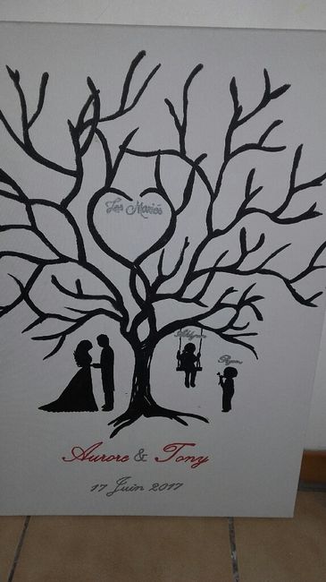 Voici notre arbre empreinte que ma copine m'a fait je suis super contente du résultat il est tel que je lui ai demander. Vous en penses quoi?