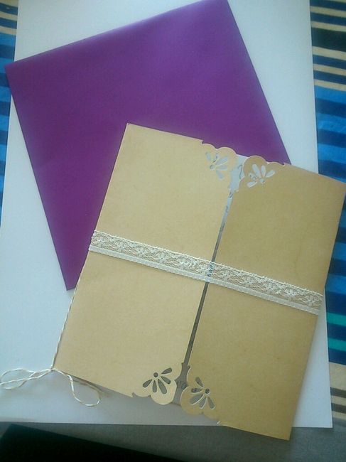 Voilà mon premier essai pour nos fp ! Vue fermé Vue fermé avec en fond l'enveloppe violette ( les coordonnées des invités seront écrits en blanc)Vue ouvertVue ouvert avec invitation repas et lendemain Qu' en pensez-vous ? Le texte sera fait sur ordi...