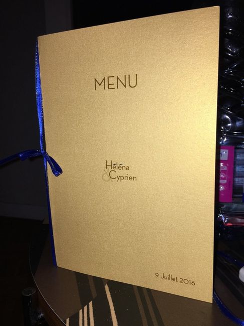 Bonsoir tout le monde,J-9 et nos menus sont prêts. On les imprimes demain! Je vous montre notre prototype!