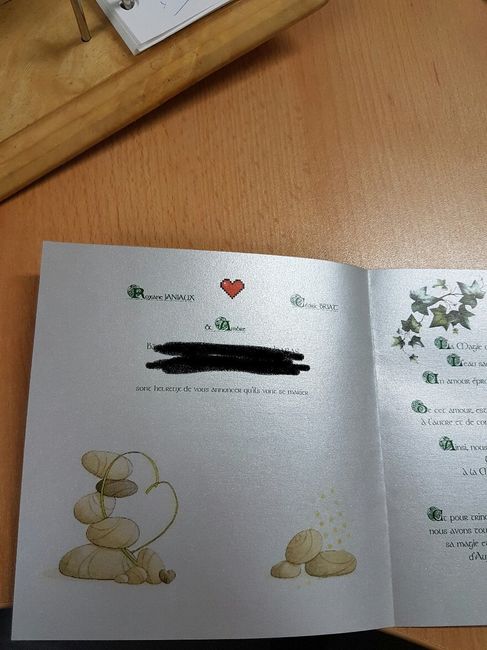 J'ai enfin finaliser mes faire part DIY !! J'ai commandé la papeterie à savoir : - 3x 25 pages pollen argent irisé 210g pour les faire part - 2x50 enveloppes carrés vertes - 1 cachet à cire avec la lettre B Coupon réponse recto page de garde Page 2...