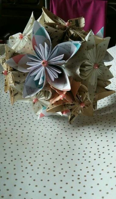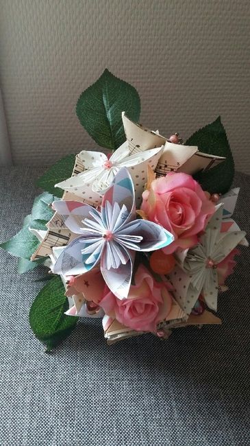 J'ai craqué sur ce bouquet de fleurs en origami. Mais dans mon thème couleur: vieux rose, gris perle et blanc.Cela vous choque t'il ? Je n'aime pas trop les fleurs coupées (mon futur est assez content que je n'aime pas les fleurs ) et je trouve...