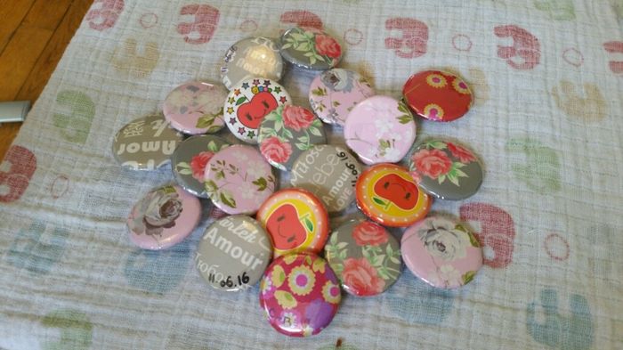 Bonjour ! Je vous partage mes petits badges (je n'en suis qu'au début! ) fait maison qui seront près de l'urne et du livre d'or pour mon mariage, pour que mes invités puissent avoir un petit souvenir. Mon mariage sera dans des tons liberty. Qu'en...