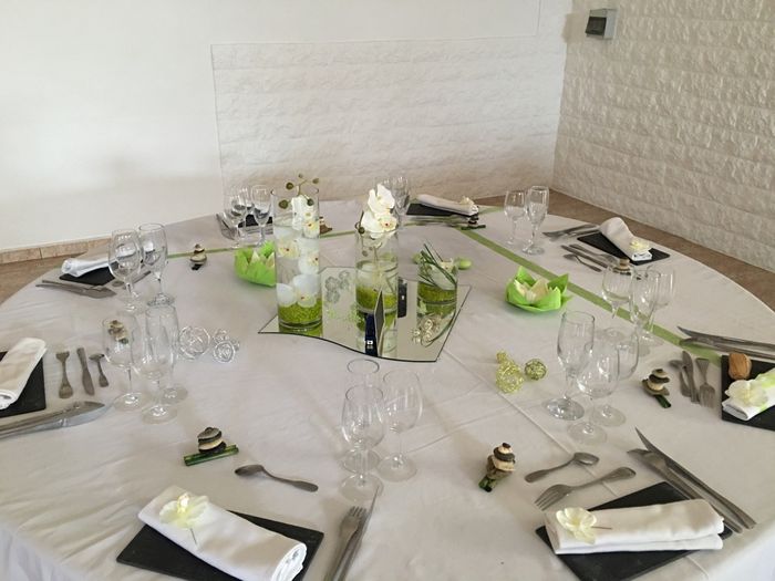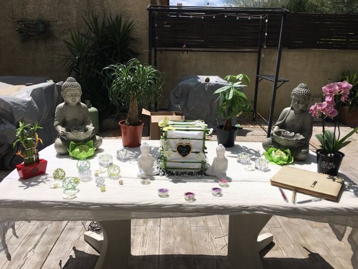 Coucou les filles un petit essai Pour notre table d accueil qu en pensez vous??? Je vous rappelle notre thème ZEN Les bouddhas sont des fontaines avec des LED, bougies seront toutes vertes et beiges....