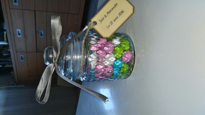 Bonjour à toutes !Voici nos derniers achats pour notre jour j ?!Photo 1 nos portes noms Photo 2 salière poivrière Photo 3 pot à crayonDésolé pour le sens des photos merci de me laisser vos avis et aussi vos idées