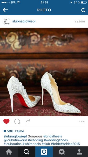 Coucou les (futures) mariées! Ma robe est arrivée, mais sans avoir acheté les chaussures, inutile d'aller l'essayer 😔Inspirez-moi, aidez-moi, montrez moi une photo de vos chaussures!Merci d'avance 😊