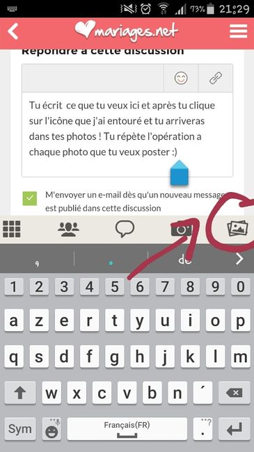 J’ai téléchargé une photo dans le post de Marie