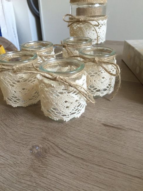 Bonjour les filles, je commence à faire mes pots, il serait temps car mariage dans 2 mois ! 24 bocaux et 36 pots la laitière à faire. Vous en pensez quoi ? Ce sont mes trois premiers. Avez vous des modèles dans le même thème à me montrer? Car je...