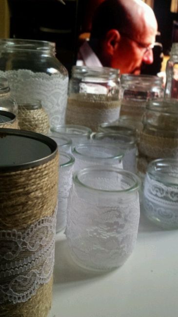 Coucou les filles, qu'est ce que vous pensez de mes DIY ? Vases et bougeoirs qui seront un peu partout hormis sur les tables (ce sera pour la table du livre d'or, urne, photobooth, table dragées, échelle, entrée de la salle etc...)