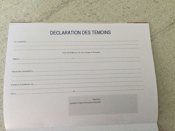 Voilà mon soucis: les témoins de chéri ne sont au Portugal.Pour qu'ils remplissent leur déclaration des témoins à remettre à la mairie, comment ça se passe?