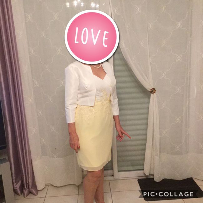 Ma mère a voulu se mettre aux couleurs du mariage alors qu’on a rien imposé!! Blanc et doré avec des fleurs jaune. Du coup elle s’est commandé une robe jaune pâle et ses chaussures sont arrivées !!