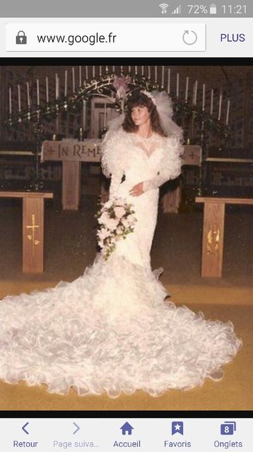 Je surfe ça et là, sur le net et puis, dimanche après-midi, je me dis : " Tiens, ce serait marrant de voir les robes de mariée l'année 1982, histoire de voir comment les filles s'habillaient pour leur grand oui, quand moi, j'ai poussé mon premier...