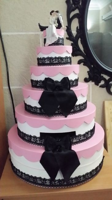 Nous voulions un wedding cake mais nous hésitions vraiement avec la traditionnelle pièce montée dont tout le monde raffole chez nous. Donc on a tranché. Une wedding cake. Mon urne