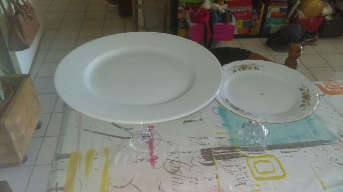 Bonjour Ce matin j'ai fais un essai pour le pliage de serviette. Bon il manque juste la petite clé à attacher à la cordelette. La qu'elle préférez vous? J'ai aussi fais un essai pour les présentoirs du bar à tarte. J'ai coller des verre Chine en...