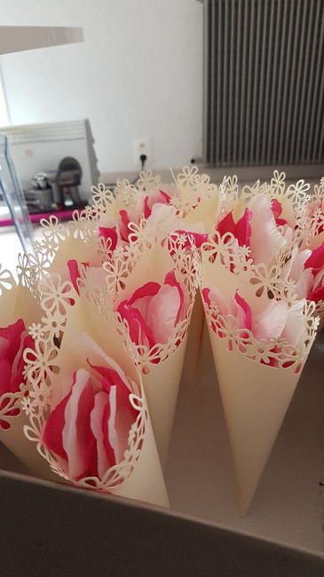 Coucou !A 21 jours du mariage je me lance dans mes cornets à pétales pour la sortie de La mairie ! Il faut que je trouve des paniers ensuite.