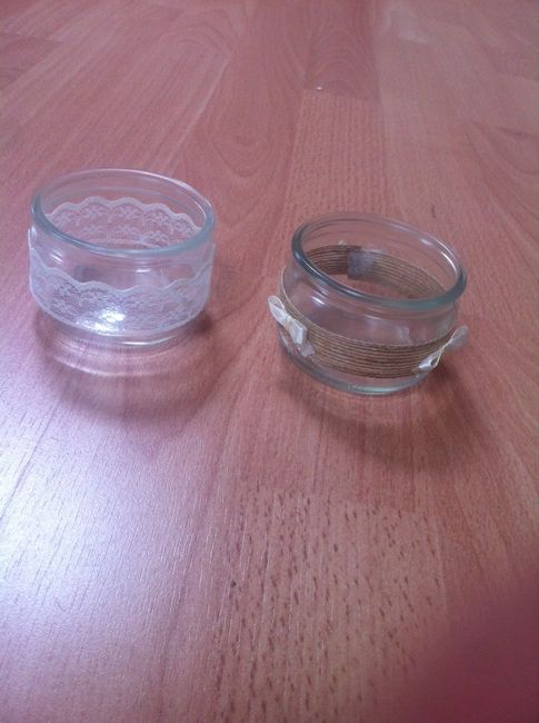 Voici mes différents photophores je compte alterner 3 de chaque, autour de mon centre de table. Vous en pensez quoi ??? Pas trop "cul-cul" les petits noeuds ?
