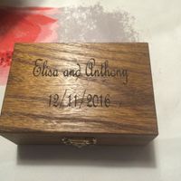 Il y a 3600 joursUne jolie surprise en arrivant ce soir, notre boîte à alliances est enfin arrivée.J'avoue que je suis un peu déçue de la couleur qui rendait mieux en photo, ici je trouve que l'écriture ne ressort pas assez car la couleur du bois est très foncée. Et...
