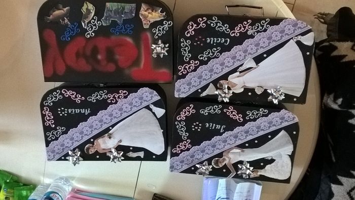 coucou les filles, alors voila ùes boites terminés, je suis satisfaite de mon travail pour les filles mais pour le mec je n'aime pas du tous je trouve sa trés moche!