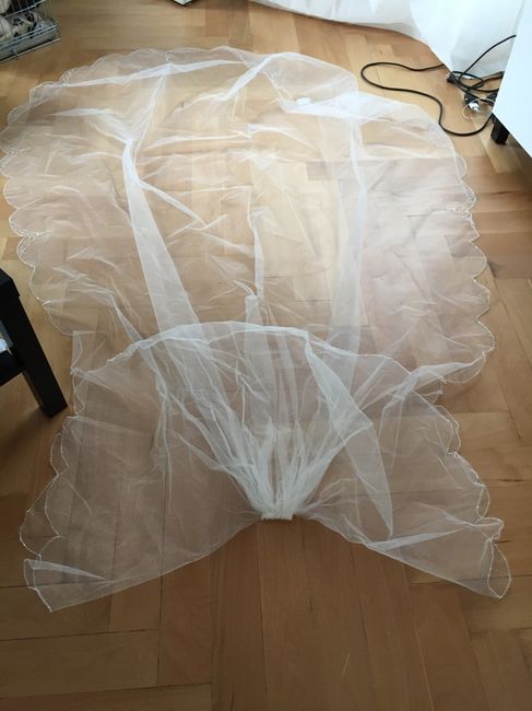 Mon voile xxl et 2 tiare à essayer ou la grande broche pour le côté un des 3 a tester avec la coiffeuse et les épingles fleurs