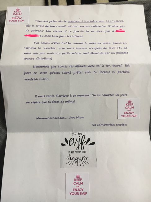 Ça y est, j'ai reçu ma fameuse lettre d'instructions pour mon EVJF de la semaine prochaine! Mes copines sont trop folles, je les aime! 😍