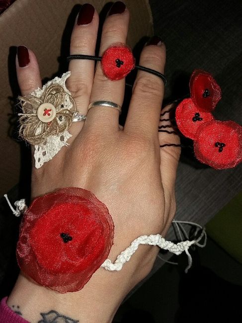 Boutonnière de mon bb 16mois (19mois au mariage) et bracelet de mes témoin et ma soeur. Thème champêtre coquelicots toute ses fleurs son dans mon bouquet que j'ai fait seule aussi.bonne soirée les filles