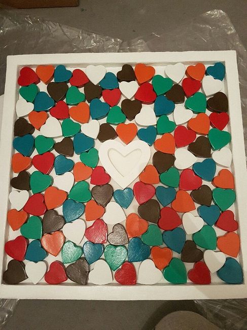 Voila un test de notre livre dor enfin tableau dor Qu en pensez vous? Chaque invité choisi son coeur et sa couleur pr ecrire un ptit mot ou juste signé. Il y aura deux couleurde stylo et des carte de visite pour ceux un peu plus bavard