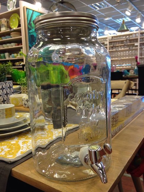 Voici mes fontaines à boisson pour le vin d'honneur qui sera une sorte de Garden Party..Incontournables ces bonbonnes !!!Je les voulais Pour nous, il n'était pas concevable de pourrir la deco avec des bouteilles de sodas ou de cristalline donc...