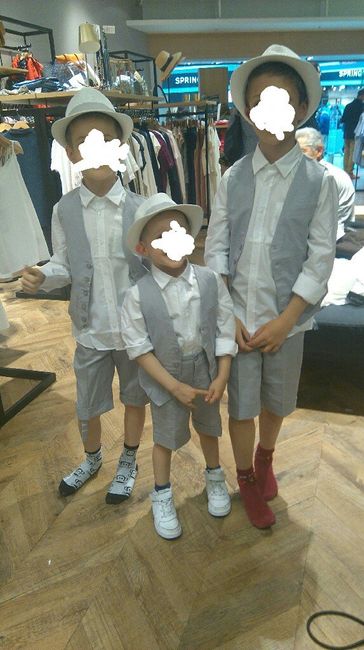 Et voici nos beaux garçons d honneur ! Nous avons trouvé leur tenue cet après-midi !!Ils ont été super charmants et choux dans la boutique... Ils ont fait craqué la vendeuse, et les autres clients !!!Il y a mes deux neveux et le filleul de mon...